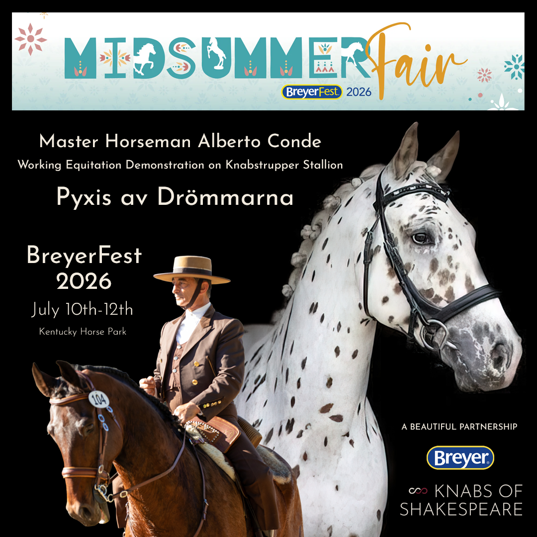 We’re excited to be a part of BreyerFest 2026, themed "Midsummer Fair," which takes place July 10th-12th at the Kentucky Horse Park and online. This event celebrates Scandinavian culture and traditions, and equine breeds from Norway, Sweden, Finland, Denmark, and Iceland. Tickets go on sale in February and are offered while supplies last and may be limited in availability. Click below for more information.